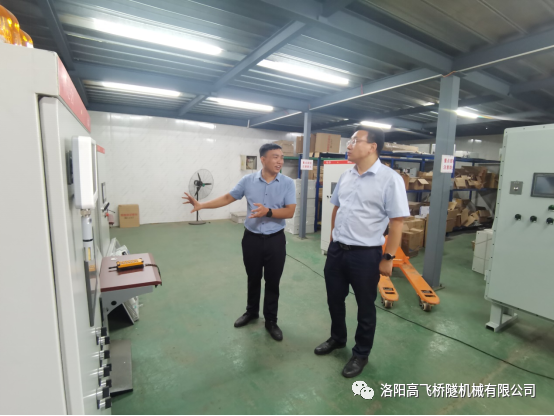 “问需于企,助企纾困。”为了倾听企业心声,找准突出困难问题,助力企业纾困解难。2022年9月23日西工区区委组织部部长王加祥、区委组织部办公室主任刘国斌、红山街道办事处主任邢斐一行到洛阳高飞桥隧机械有限公司走访调研,公司董事长黄高飞陪同介绍公司近况。