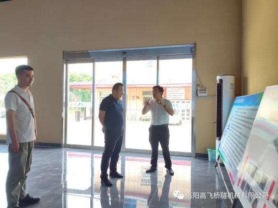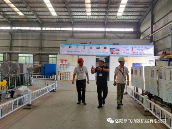 董事长黄高飞向许部长、瞿总介绍了高飞桥隧公司发展历程、主营业务、主导产品、发展规划及专 利布局。许部长一行深入公司生产现场实地考察,详细听取了黄董事长的汇报,赞扬了像高飞桥隧这样的制造业公司为国家基础建设、产业发展做出的贡献,感叹企业主导产品之形大、之细致、之布局、之不易,在公司试拼完毕的衬砌台车前,留下了珍贵的合影。