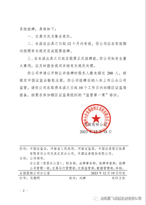 挂牌上市是我们迈向更高层次的重要一步,同时也是我们未来上市交易所——北交所上市的准备工作之一。我们将继续加强公司内部管理,提高核心竞争力,不断完善财务报告和信息披露,以符合北交所的上市要求和标准。