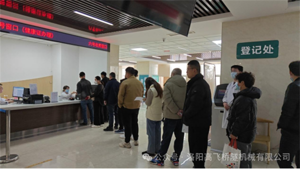 为了确保体检活动的顺利进行,公司人事行政部提前与洛阳市第六人员医院体检科进行联系为高飞桥隧开通员工体检绿色通道,避免长时间的排队等待,使员工能尽快完成体检。