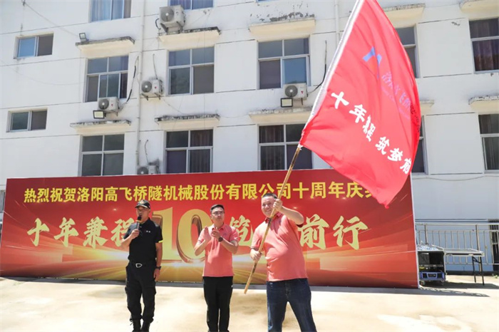 黄董对十周年.庆拓展活动进行开场致辞,期望大家在团建活动中放松心情、增进友谊、加强合作,在欢声笑语中共同度过一个难忘的时光!过程中进行了严肃而庄严的授旗仪式,他希望全体高飞人同舟共济,一起书写高飞下一个十年并预祝活动取得圆满成功!