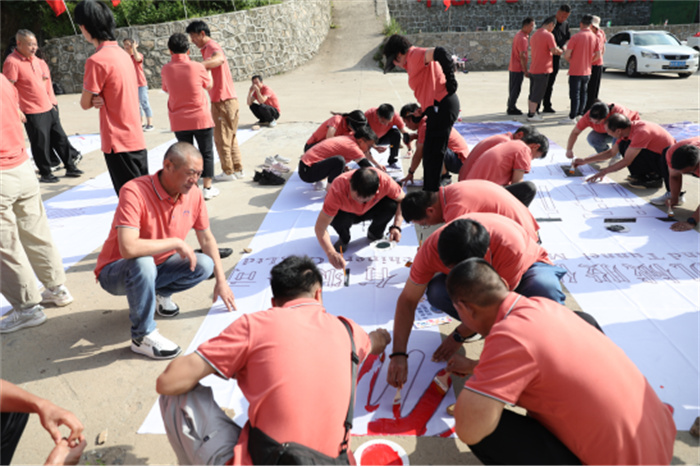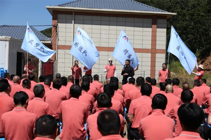 全体员工在教练带领下,到达红色基地培训中心,举行了隆重的拓展开营仪式。