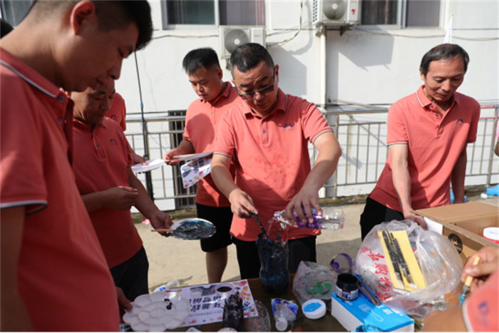 在激烈的团队竞赛后,活动来到共绘蓝图环节,8个小队分工协作,在纳斯卡巨画上描绘了“十年兼程,筑梦前行”的活动主题图案。