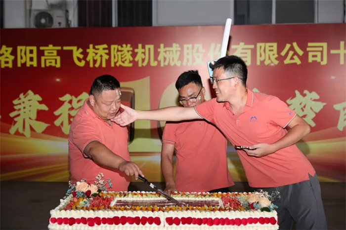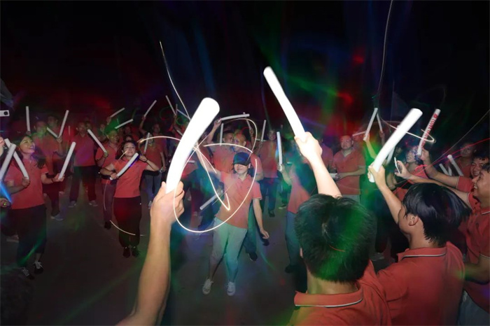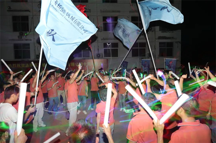 晚上的篝火晚会,公司三位领导共切高飞股份十周年生日蛋糕,伴随着欢快的生日歌及100发加特林的同时燃放,点燃了整场晚会。激情的音乐,跳动的旋律,使得大家都忍不住的律动起来,共同庆祝了这个美好的时刻。